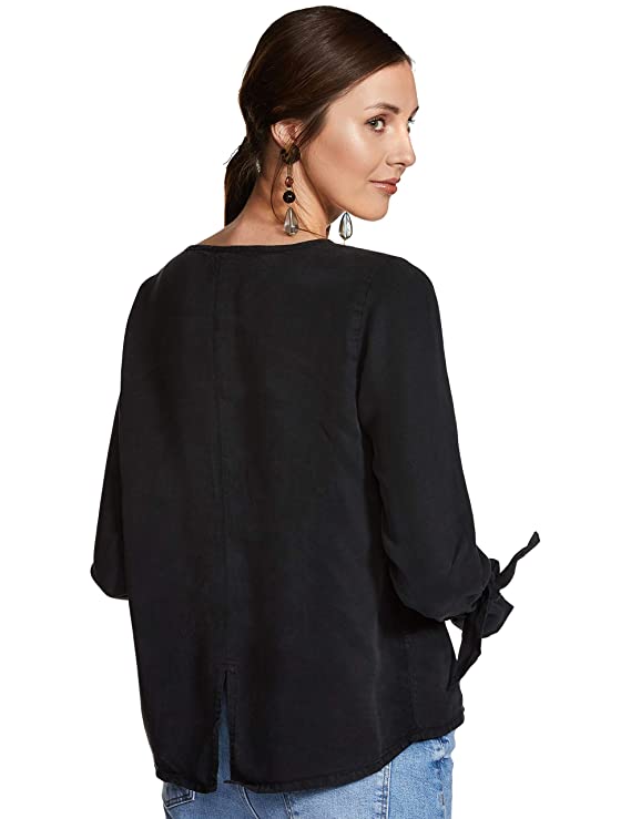 Vero Moda Women Black Solid Long Sleeve Round Neck Top