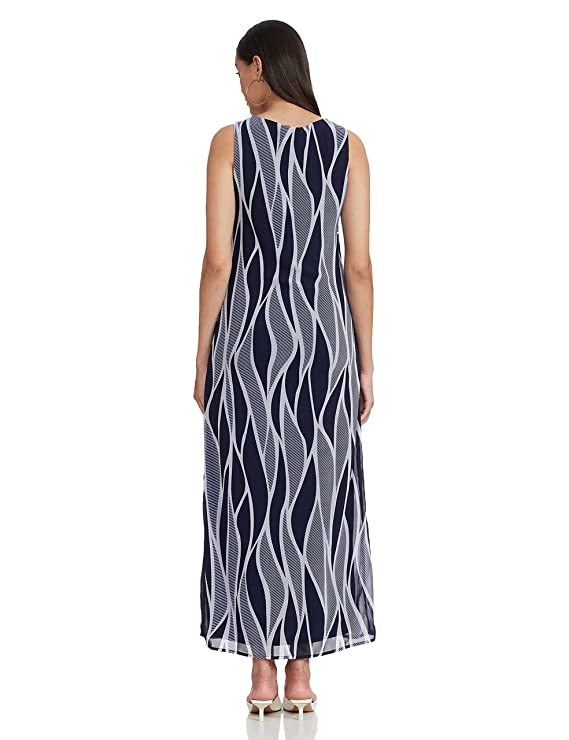 Vero Moda Women’S 100%Polyester Printed Regular Fit Sleeveless Round Neck Casual Dress